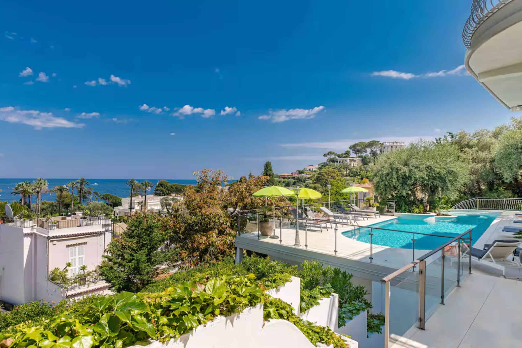 The luxurious villa offers exceptional views over the Mediterranean sea. Guests can enjoy its private garden with an outdoor pool and large terrace – perfect for entertaining.
