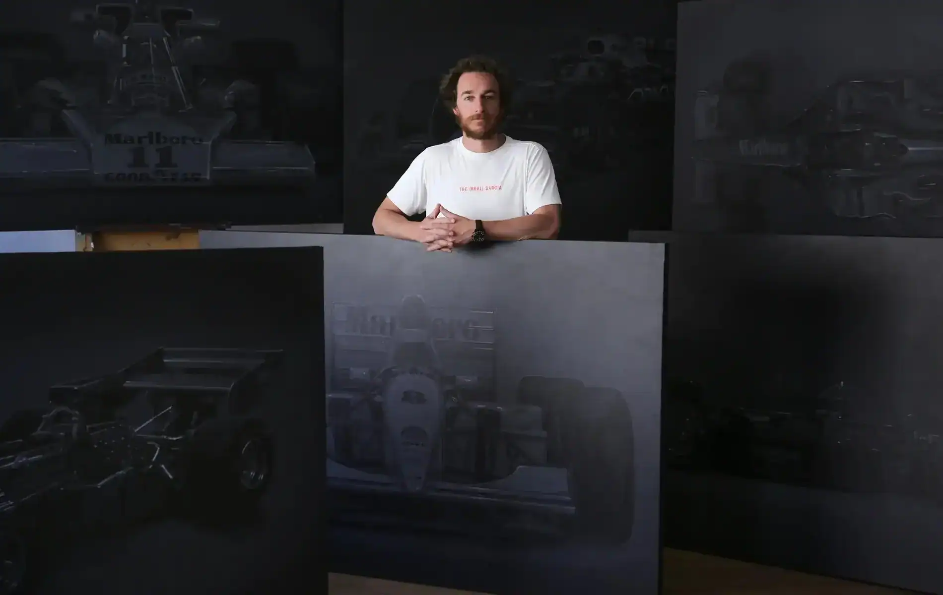 Manu’s paintings faithfully recreate iconic classic cars and Formula 1 machines. Light dances across bodywork. Reflections tell stories. Every surface is intentional.