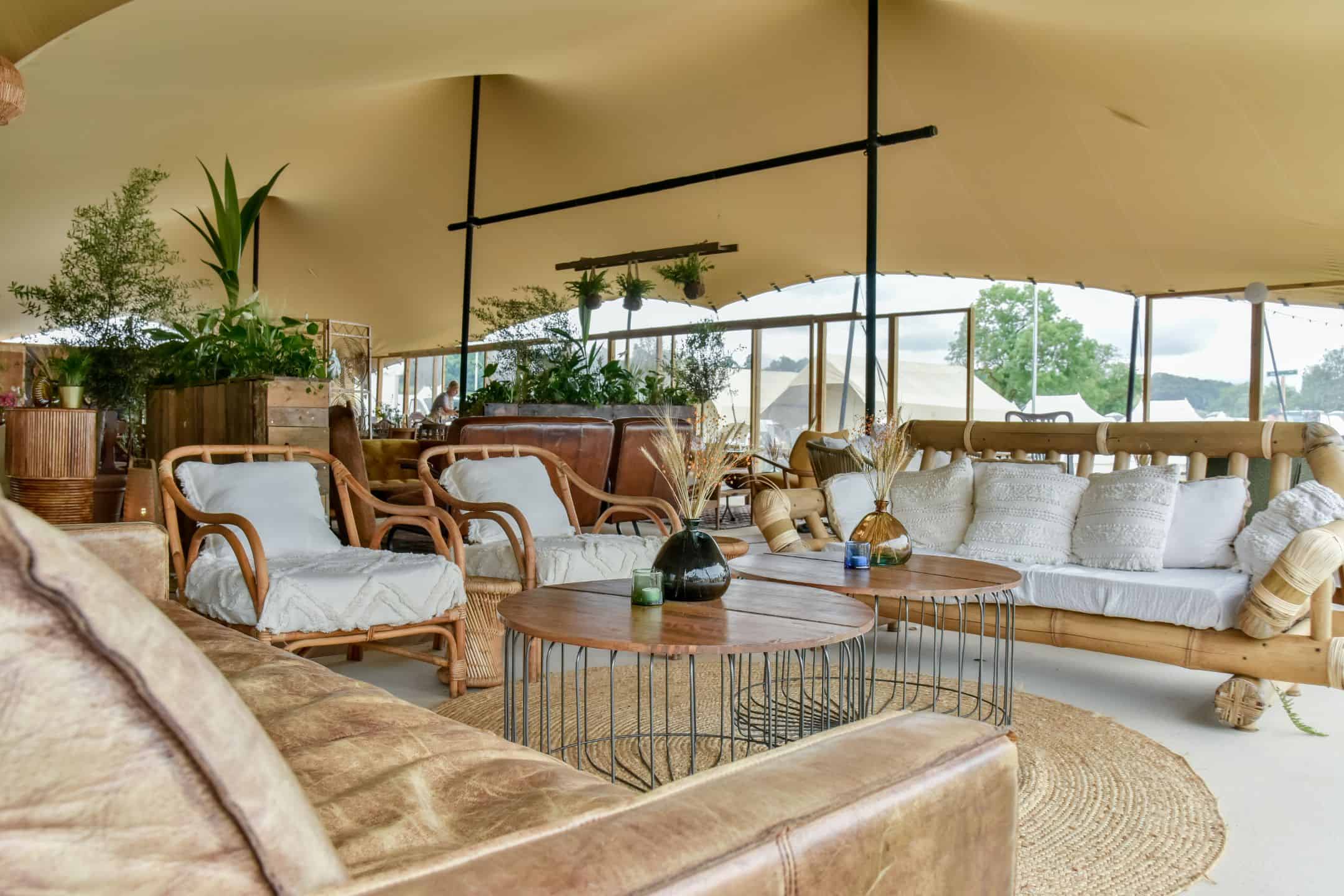 Set just a short walk from Gate D, the site features over 300 bespoke rooms ranging from classic bell tents to expansive tenthouse suites. Each space is designed with privacy, comfort and convenience in mind.